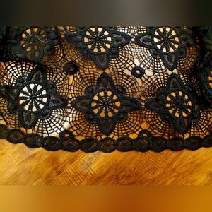 Elegant black lace cardigan with open-work design. Perfect for layering. Gorgeous design to compliment any outfit.