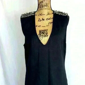 Juicy Couture Pitch Black Ponte Dress NWT Sleeveless Shoulder Charms