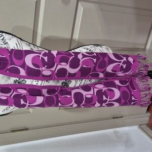 Coach 100 % Merino Wool Purple Patterned Women's Scarf