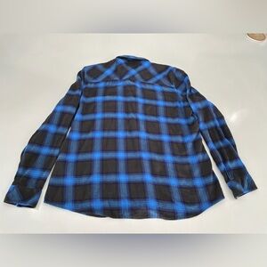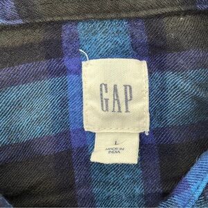 GAP Blue Black Plaid Flannel Button Up Shirt L Long Sleeve Chest Pocket Cozy
