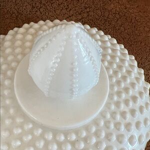 Add a touch of elegance to your home with this beautiful white hobnail cookie jar. Beautiful condition for its age.Milk glass.