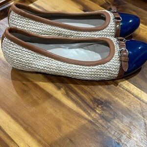 AGL Cap Toe Ballet Flats Blue and Tan Flats with leather strap and buckle