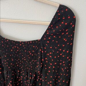 Free People Black Blouse with Red Cherries