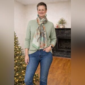 Vintage Greece Santorini Fresco Print Sheer Skinny Scarf