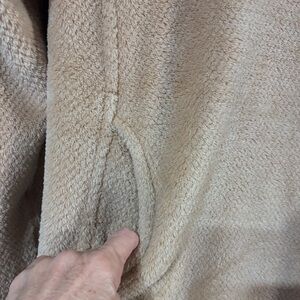 Made from 100% polyester fleece, this pullover features long sleeves, a snap closure, and convenient pockets. With a chest size of 23.5” lying flat across the chest, length from shoulder to bottom 25” and this size XL..