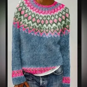 Retro Pink Fair Isle Sweater English Countryside Sweater Cottagecore Sweater