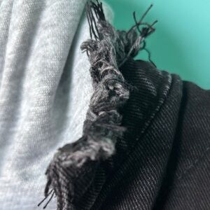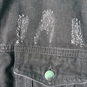 Stylish bomber jacket with black denim and gray hoodie. Features bold 'London' text on sleeve. Perfect for casual wear.