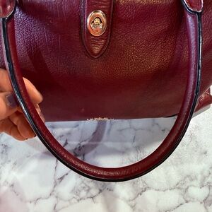 Sophisticated Coach satchel in dark red leather. Features elegant design and ample space. Has some blemishes see pictures.