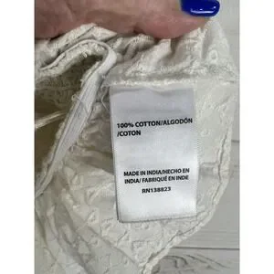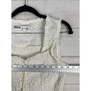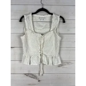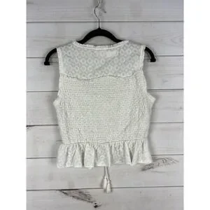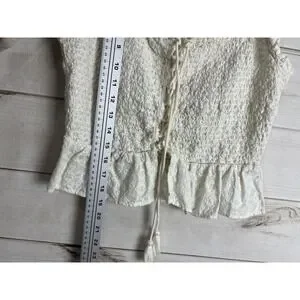 Shyanne Tank Top Womens Small White Embroidered Smocked Lace Up Ruffle Hem Boho