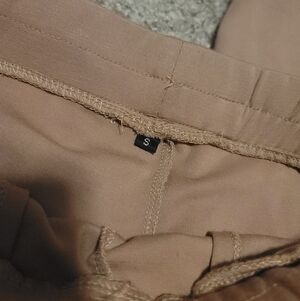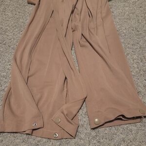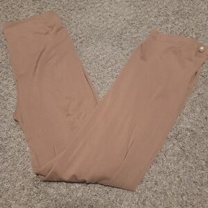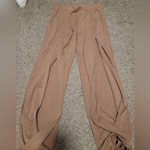 Creatures of xix make moves high waisted slit pants in sand beige nude. Has front slits on both legs with snaps at the bottom for adjustability, and drawstring waist. Super soft and comfy
