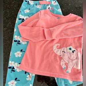 Charming coral pajama set with an adorable elephant design. Includes floral patterned pants and top . Ideal for cozy nights.