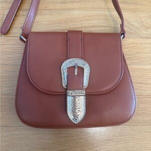 Vintage Style Western Buckle Crossbody Bag - Brown Faux Leather Y2K Boho
