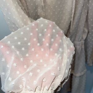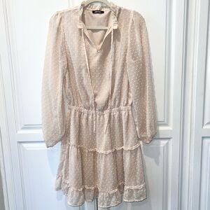 BTFBM Mini Dress Long Sheer Sleeves Swiss Dot Smocked Ruffle Chiffon Flowy Med
