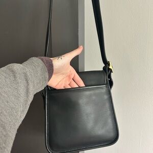 In near perfect condition! I impulse bought this in the wild but I haven’t used it yet. My coach collection is too big but she deserves a lovely new home! Black leather and golden fasteners.