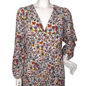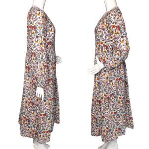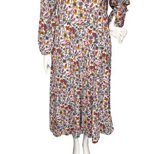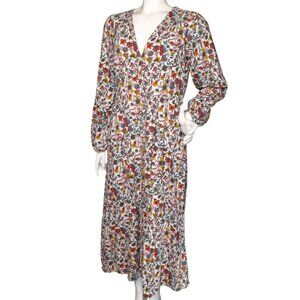 BODEN Long Dress, 10R, Multicolor floral, Long sleeve, V-neck, Cotton