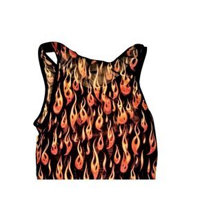 Vintage Y2K She Devil Mesh Flames Tank Top. Size Large. Measures 17" across the back and is 23" long from shoulder to hem. 100% Polyester. I have matching thong panty I'm throw in for free if you want it. Didn't list the panty because it's not NWT and some people feel strange about buying used underwear.