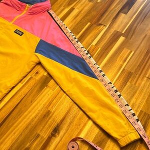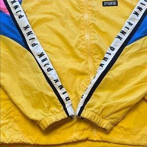 Victoria's Secret Pink Yellow Blue Block Retro Windbreaker Hooded Jacket