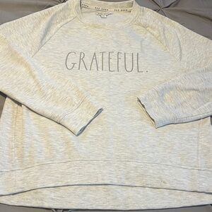Rae Dunn Gray Pullover Crewneck Graphic “Grateful” Sweatshirt