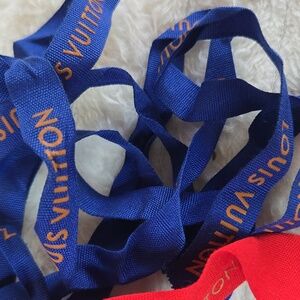 Stylish Louis Vuitton ribbons. Features vibrant red and deep blue with gold accents.