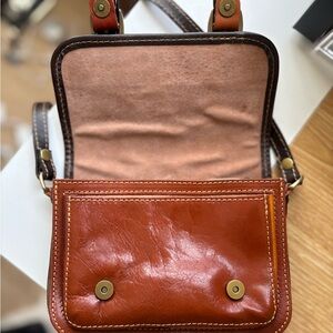 Authentic vintage Vera Pelle Italian leather crossbody satchel, handcrafted in Florence, Italy using traditional artisan techniques. This one-of-a-kind patchwork design features rich, earthy tones and showcases the quality of Italian leather goods made to age beautifully over time.