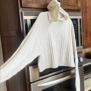 ALO CABLE KNIT WINTER BLISS HOODIE IVORY SLOUCHY OVERSIZED CROPPED FIT