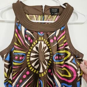 Nicole Miller Top Women Size Small Multicolor Sleeveless Pullover Blouse Satin Pockets. Excellent Condition.