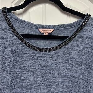 Juicy Couture Heathered Blue Cold Shouldered top with black crystal neckline