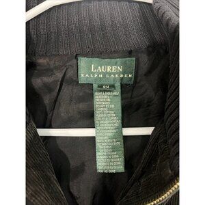 Lauren Ralph Lauren Zip Up Jacket Womens 2X Black Corduroy Bomber Ribbed Pockets