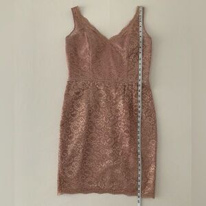 New! David’s Bridal Rose Gold Metallic V-Neck Sheath Cocktail Dress with Straps