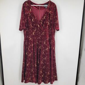 Collectif Modcloth Burgundy Velvet Whimsigoth Witch Celestial Midi Dress Size 22