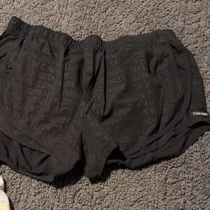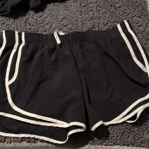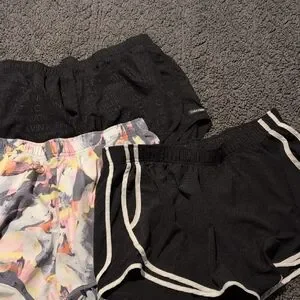 Three stylish shorts. Includes black with logo, black with white trim, and abstract pattern. inside liner.