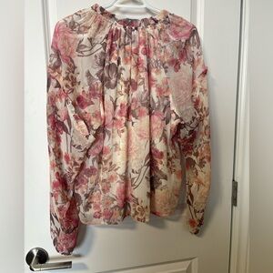 Floral Frilled Neck Blouse, item 3010336-1219, size L NWT