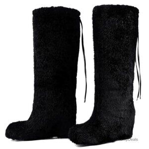 Brand new with tags and in flawless condition — these knee-high winter boots deliver a cozy, fashion-forward look perfect for cold weather, concerts, parties, or ultimate indoor lounging comfort. The plush faux fur lining and secure fit ensure warmth and style in one standout pair.