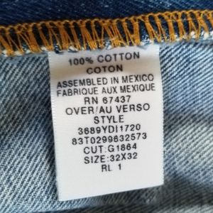 Jeans have a 32 inch waist and a 32 inch inseam and are clean with no holes or stains.