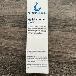 Brand new GlacialPure replacement refrigerator water filter, model GP002. New in box and factory sealed. Never used.