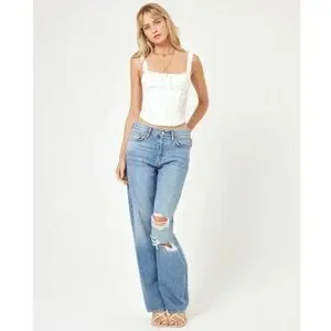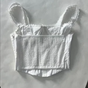 L*Space Jamie Cute Lace Trim Corset Top Smocked Cotton White Large