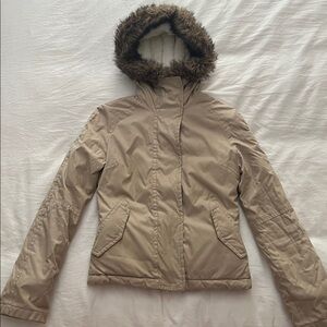 TNA Tan Hooded Jacket with Faux Fur Trim