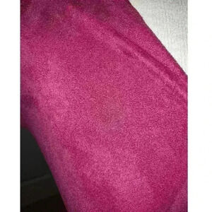 Beautiful wrap dress in a deep raspberry suede. Has a hook and eye closure at the top of the invisible zipper.