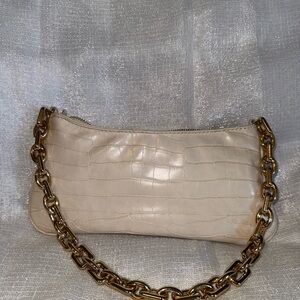 ZARA Elegant Cream Croc-Embossed Bag with Gold Chain