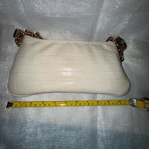 This stylish cream bag features a chic croc-embossed design and a luxurious gold chain. Perfect for any occasion, it adds a touch of elegance to your outfit. Strong sturdy chain.