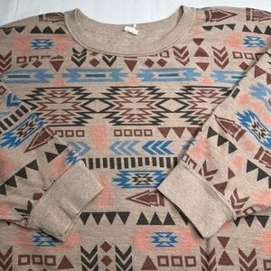 Ariat Women Aztec Reversible Pullover Sweatshirt XL Rainbow Vista Brazil Nut
