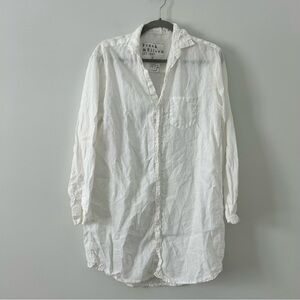 Frank & Eileen White Mary Linen Button Down Long Sleeve Shirt Dress S