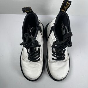 This listing is for a pair of youth size 12 white Doc Marten 1460J boots. These boots are pre-owned. Some scuffing in the toes. Good tread. Please see photos for details.