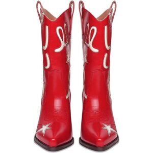 ⭐ Metallic Cowboy Boots for Women - Embroidered Mid Calf Western Cowgirl Boots