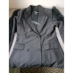 NEW Fashion Nova Blazer Womens Medium Black Double Breasted Ruffled Sleeve Artsy