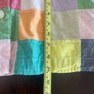 Color: Multicolor pastel patchwork squares including yellow, pink, green, blue, gray, and other soft tones