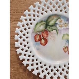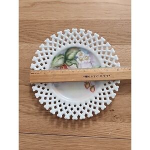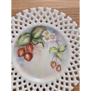 Antq Vtg Lefton Reticulated Floral Lattice Plate Hand Painted Spring Strawberry