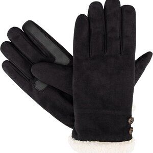 Features: Classic microsuede shell with a cozy sherpa cuff and fashionable buttons. Water repellent technology keeps your hands dry, while the smartTouch tech allows you to use your devices without exposing your hands to the cold. Extra grip with palm strips. Soft sherpa lining for ultimate warmth and comfort.