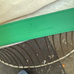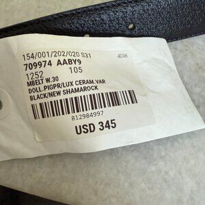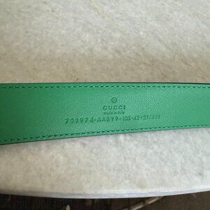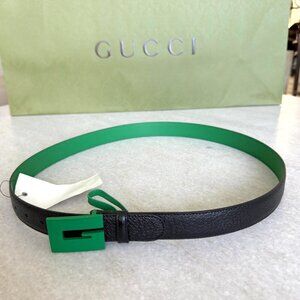 * Style: Black Leather Belt with Green G Buckle