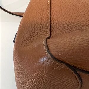 Chic and versatile gingerbread leather shoulder bag by Kate Spade. Ideal for everyday use. Inside of bag is perfect there are some signs of usage on the bottom or side of bag as shown in the pictures. Bag is 12” at the base and 10.5” at the top, 9.5” tall and 5.5” wide.